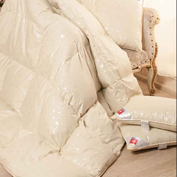 В качестве наполнителя одеял и подушек серии "Лаванда" используется белый гусиный пух категории "Экстра-Люкс" (не менее 90% пуха). Ткань чехла выполнена из батиста (100% хлопок).
